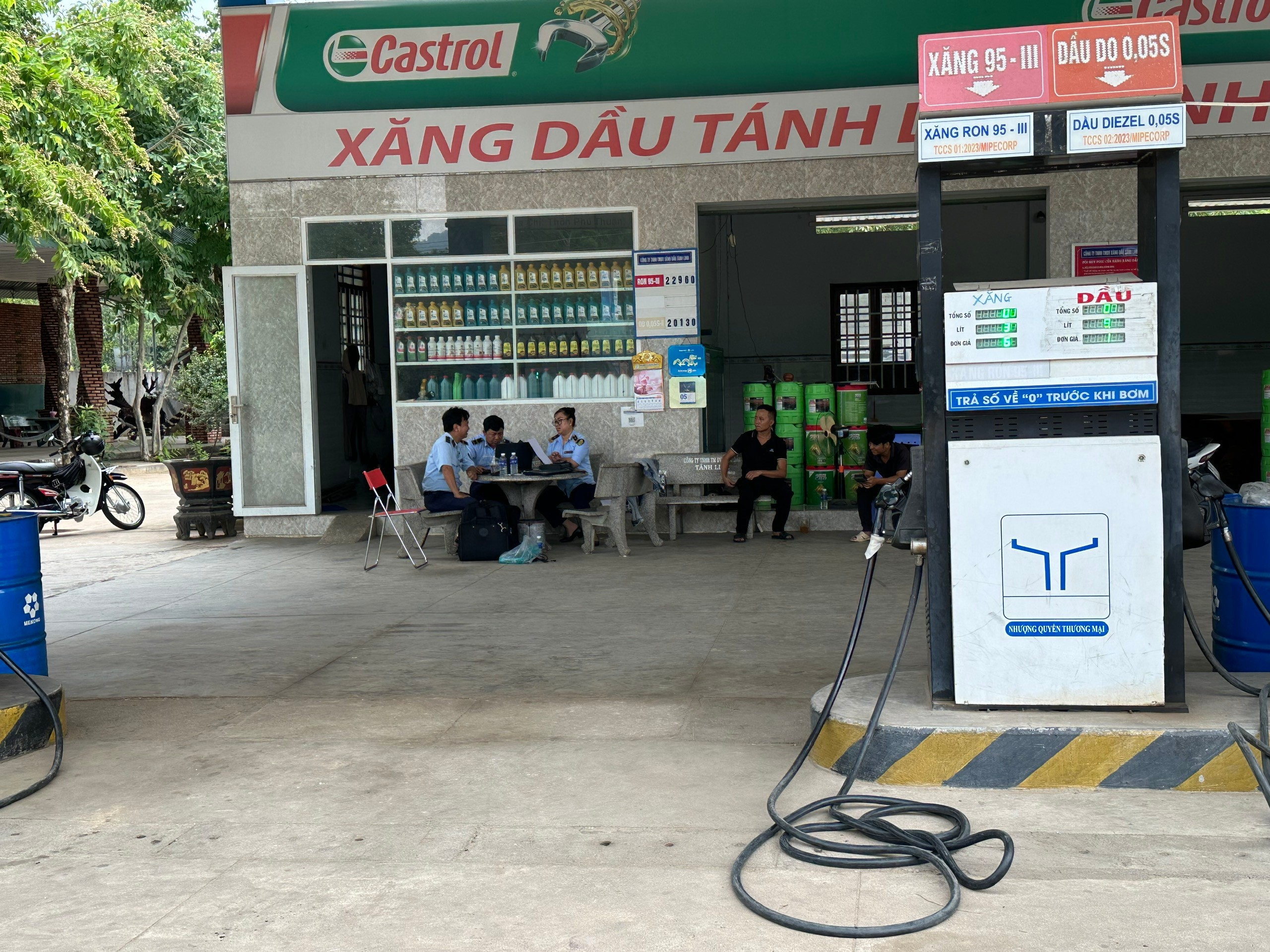 (Đoàn kiểm tra của Đội QLTT số 4 đang tiến hành kiểm tra doanh nghiệp kinh doanh xăng dầu trên địa bàn huyện Tánh Linh)