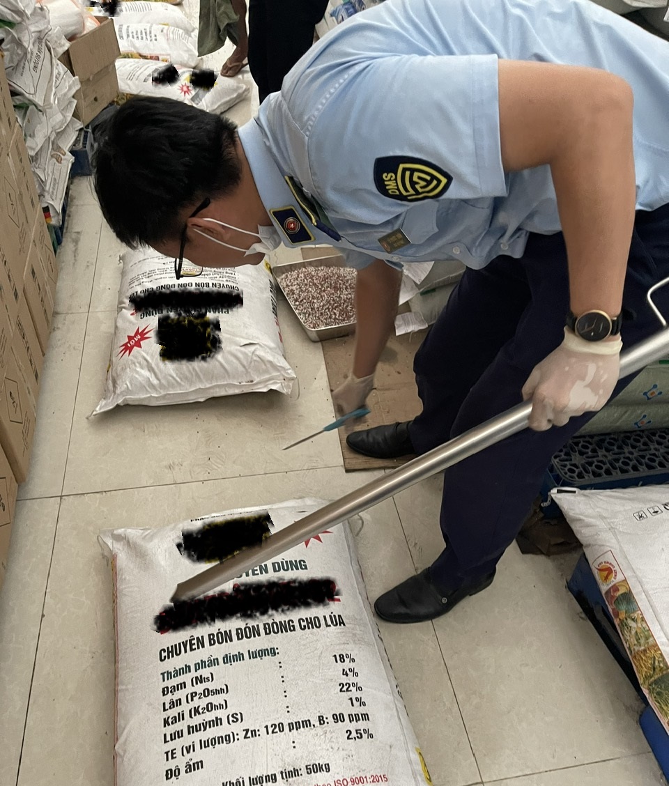 Hình: Đoàn kiểm tra lấy mẫu phân bón để kiểm tra chất lượng
