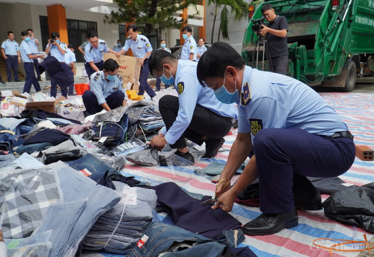 Lực lượng chức năng sẽ hủy hình dạng ban đầu của tài sản như dùng dao, kéo cắt thành nhiều mảnh làm mất hoàn toàn giá trị sử dụng, sau đó tùy thuộc vào tính chất, đặc điểm của tài sản để tiêu hủy, đảm bảo vệ sinh môi trường. Việc tiêu huỷ toàn bộ sản phẩm giả mạo nhãn hiệu có sự giám sát, chứng kiến của các cơ quan chức năng trên địa bàn.