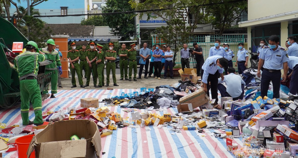 Cục Quản lý thị trường (QLTT) tỉnh Khánh Hòa phối hợp với các cơ quan chức năng tổ chức tiêu hủy hơn 11.500 đơn vị sản phẩm nhập lậu, giả mạo nhãn hiệu và hơn 8.000 bao thuốc lá điếu nhập lậu.