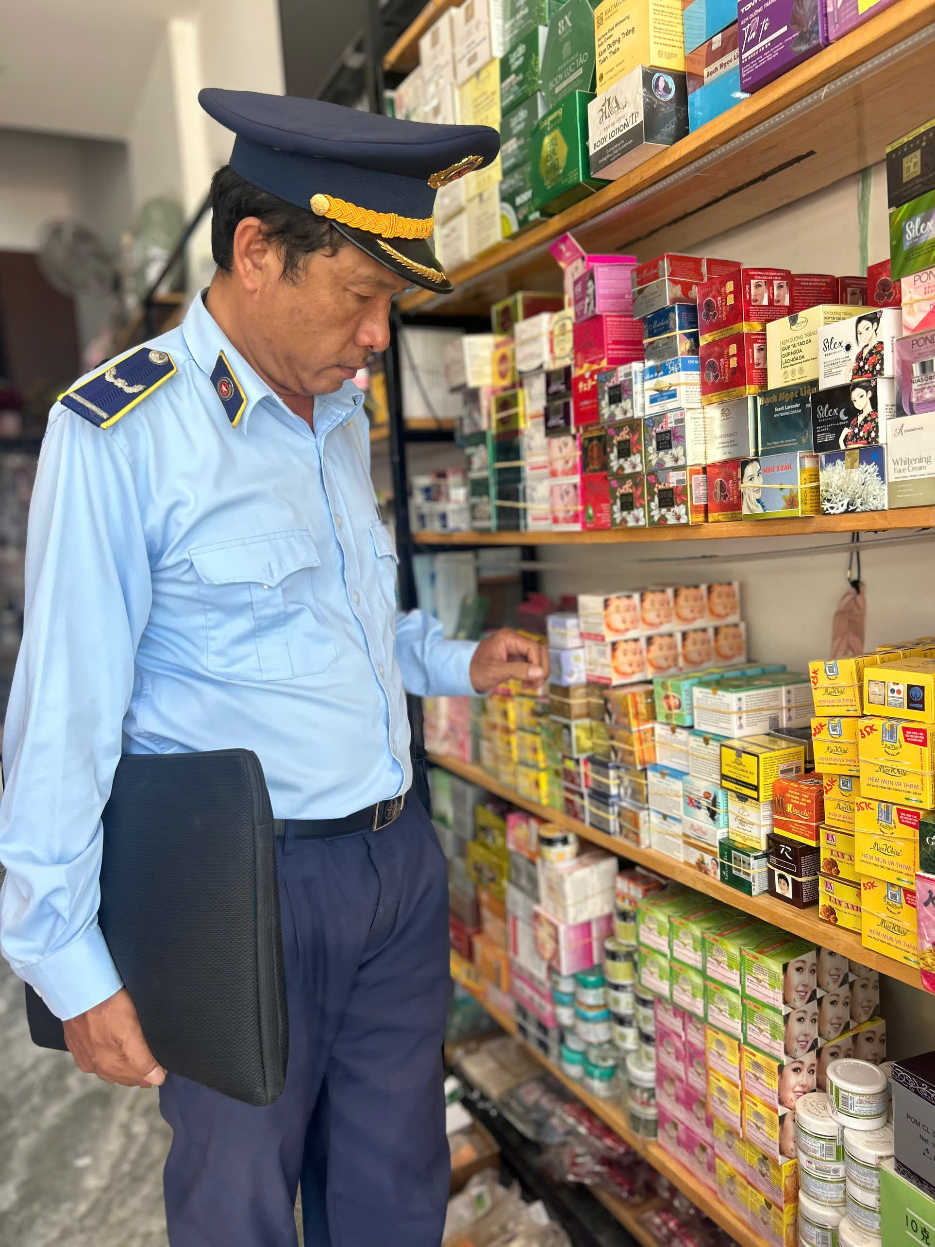 Bằng các biện pháp nghiệp vụ Quản lý thị trường, Ngày 04/10/2024 Đội QLTT số 1 kiểm tra đột xuất Hộ kinh doanh T.T.T trên địa bàn thành phố Phan Rang-Tháp Chàm. Qua kiểm tra phát hiện Bà T.T.T, cùng lúc, đang làm đại diện của 02 hộ kinh doanh tại 02 địa điểm khác nhau.Ngoài ra, qua kiểm tra phát hiện Hộ kinh doanh T.T.T đang kinh doanh hàng hóa là mỹ phẩm không rõ nguồn gốc xuất xứ. Trị giá hàng hóa vi phạm : 3.255.000 đồng.