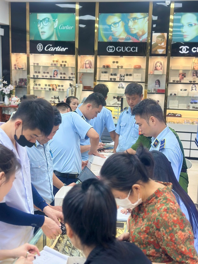 Tại thời điểm kiểm tra, lực lượng chức năng phát hiện và tạm giữ gần 200 đơn vị sản phẩm, có trị giá theo giá niêm yết trên sản phẩm là hơn 300 triệu đồng, hàng hoá gồm kính mắt các loại có dấu hiệu giả mạo các nhãn hiệu nổi tiếng đã được bảo hộ tại Việt Nam như Cartier, Louis Vuitton, Versace, Rayban, Gucci, Chanel, Dior, Balenciaga, Burberry, …, chủ cửa hàng chưa xuất trình được giấy tờ chứng minh nguồn gốc hợp pháp của số hàng hóa trên.
