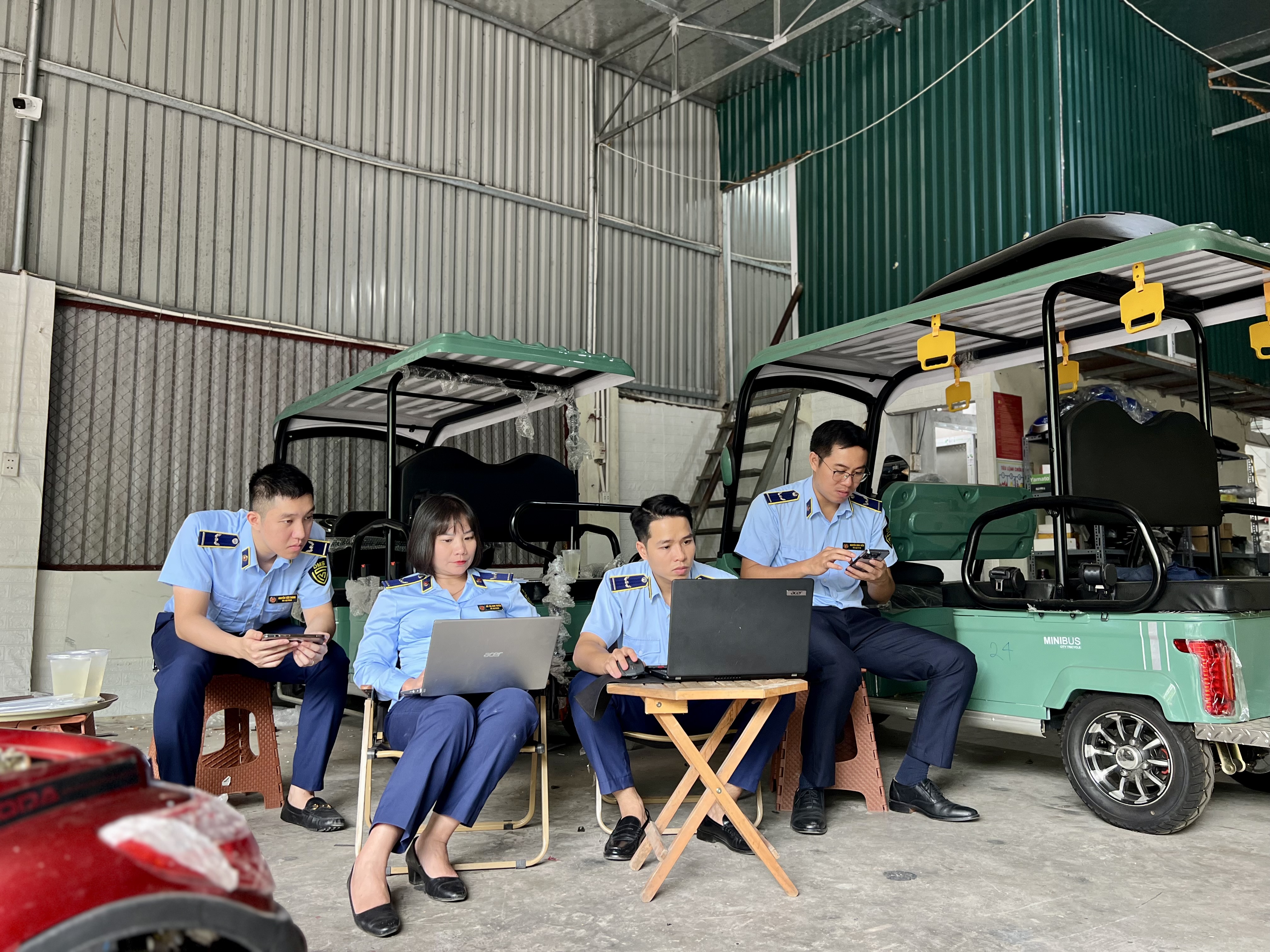Ngày 05/11, Phòng Nghiệp vụ 1, Cục Nghiệp vụ QLTT phối hợp với PC03, Công an thành phố Hà Nội; Đội QLTT số 8, Cục QLTT thành phố Hà Nội; Đội Cảnh sát kinh tế, Công an huyện Gia Lâm và Công an thị trấn Trâu Quỳ đột xuất kiểm tra Hộ kinh doanh xe điện M.P, tại đường Ngô Xuân Quảng, thị trấn Trâu Quỳ, huyện Gia Lâm, thành phố Hà Nội.