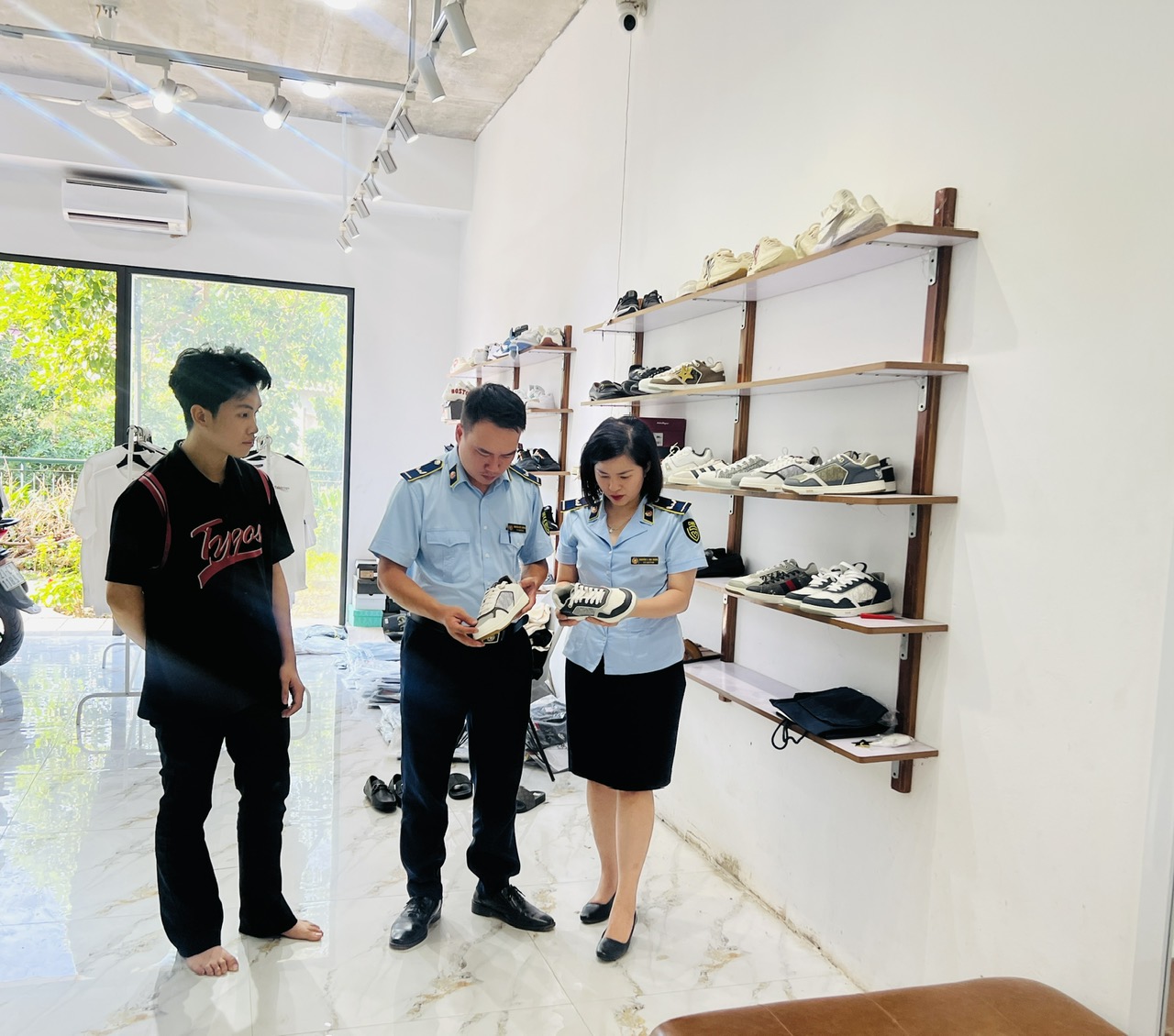 Đội Quản lý thị trường số 2 đã ban hành Quyết định kiểm tra đối với cơ sở trên. Qua kiểm tra, phát hiện tại cửa hàng có kinh doanh hàng hóa giầy mang nhãn hiệu DIOR là hàng hóa giả mạo nhãn hiệu DIOR đang được bảo hộ tại Việt Nam. Qua đối chiếu hình ảnh, clip giới thiệu sản phẩm giầy mang nhãn hiệu DIOR được đăng tải trên trang facebook cá nhân “2hs…”, đoàn kiểm tra xác định số giày giả mạo nhãn hiệu DIOR phát hiện tại hộ kinh doanh trùng khớp với hàng hoá mà hộ kinh doanh đăng trên trang facebook cá nhân. Đoàn kiểm tra đã tiến hành lập biên bản về hai hành vi: Buôn bán hàng hóa giả mạo nhãn hiệu và Kinh doanh hàng hóa xâm phạm quyền sở hữu trí tuệ trên môi trường internet.
